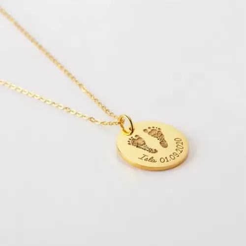 Celebrate new life with our Custom Baby Footprint Necklace, a heartfelt keepsake engraved with your baby’s real footprint, handprint, name, and birth date. This personalized necklace is a meaningful gift for new moms, baby showers, or Mother’s Day, symbolizing love, family, and precious memories.